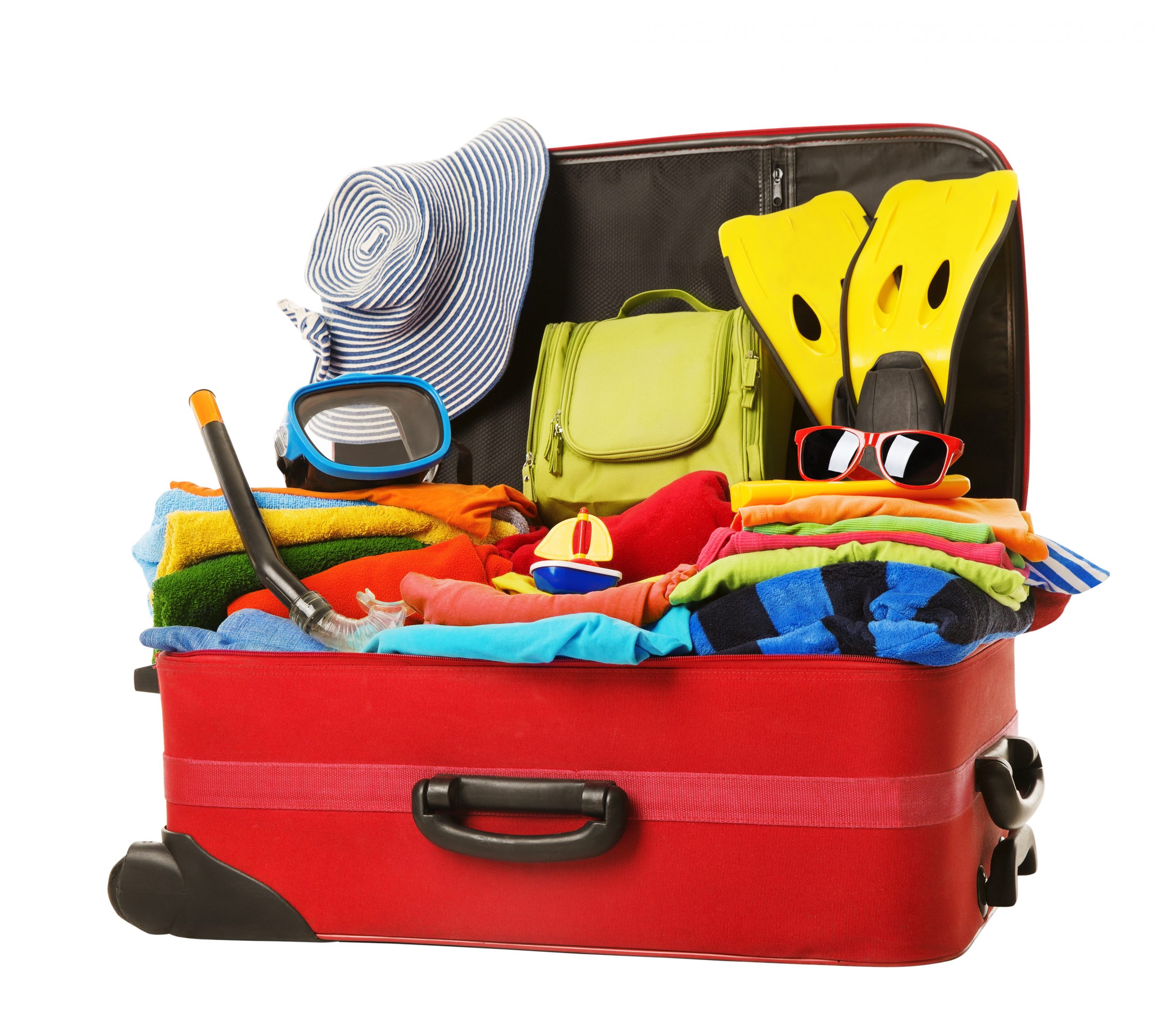 Suitcase Packed To Vacation, Open Red Luggage Full Of Clothes, F Suitcase Packed to Vacation Open Red Luggage Full of Clothes Family Travel Items Baggage Trip Concept Read More