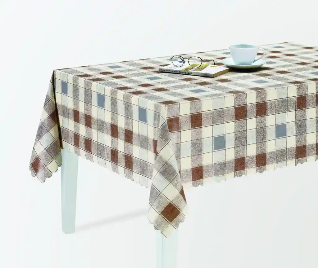 Voksduk fine beige ruter. Den har fleece bakside og er en type duk som brukes til å beskytte overflater mot søl, flekker og slitasje samtidig som den pynter opp. Den er laget av et slitesterkt PVC-materiale som vanntettt, og har en myk tynn fleece bakside.